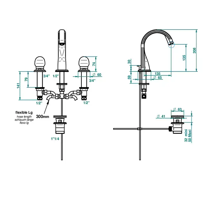 THG MOON DRAGON Смеситель для раковины на 3 отверстия, ручки с подсветкой, с донным клапаном, цвет хром