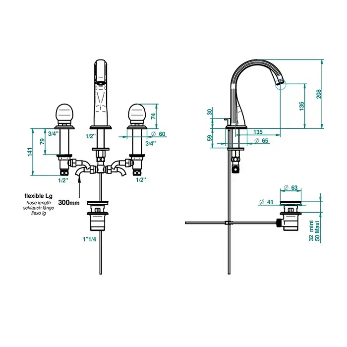 THG Dragon Sun Смеситель для раковины, 3 отв., цвет: золото/хрусталь