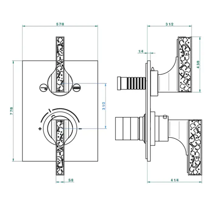 THG GINKGO Смеситель для душа встраиваемый, термостатический, с переключателем на 2 потока, внешняя часть, цвет полированное золото