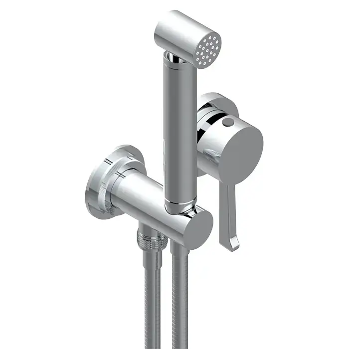 THG HAMPTONS Гигиенический душ с однорычажным смесителем, держателем с подводом воды и шлангом 1500 мм., внешняя часть, цвет хром