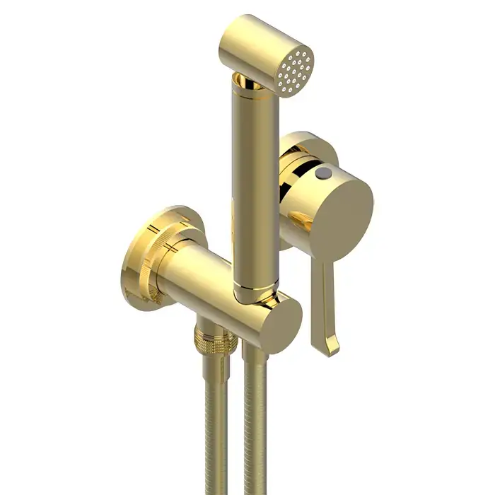 THG HAMPTONS Гигиенический душ с однорычажным смесителем, держателем с подводом воды и шлангом 1500 мм., внешняя часть, цвет золото