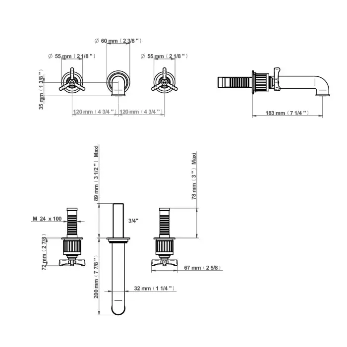 THG HAMPTONS Смеситель для раковины настенный встраиваемый, двухвентильный, внешняя часть, цвет золото