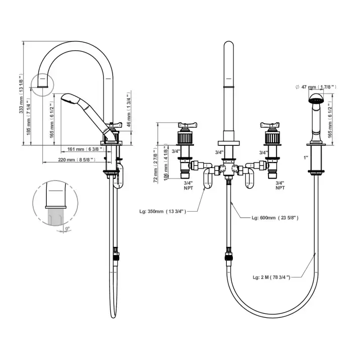 THG Hamptons Смеситель для раковины, на 3 отв, в комплекте с донным клапаном, цвет: Polished nickel