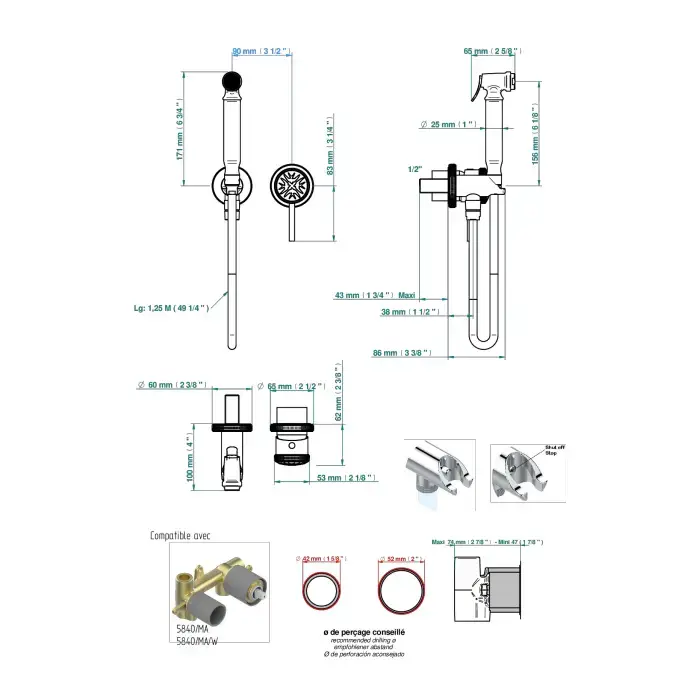 THG HIRONDELLES GOLD STAMPED Гигиенический душ в комплекте с встраиваемым однорычаж смесит, шланг 1250 мм., держ с подвод воды, внешн часть, цвет хром