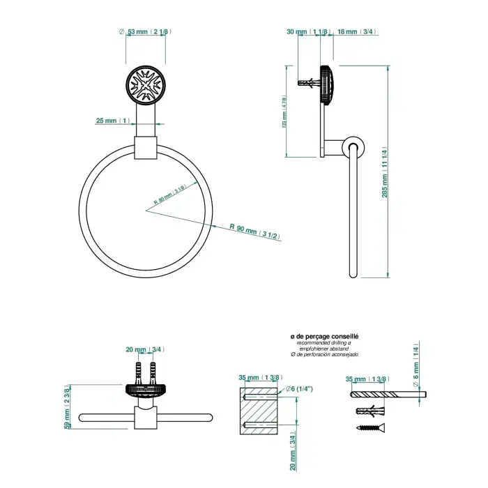 THG Hirondelles Gold Stamped Полотенцедержатель-кольцо 18см., цвет: хром