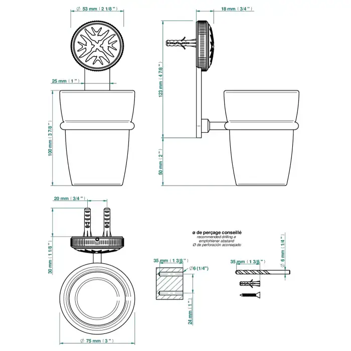 THG HIRONDELLES GOLD STAMPED Стакан стеклянный, настенный, цвет хром