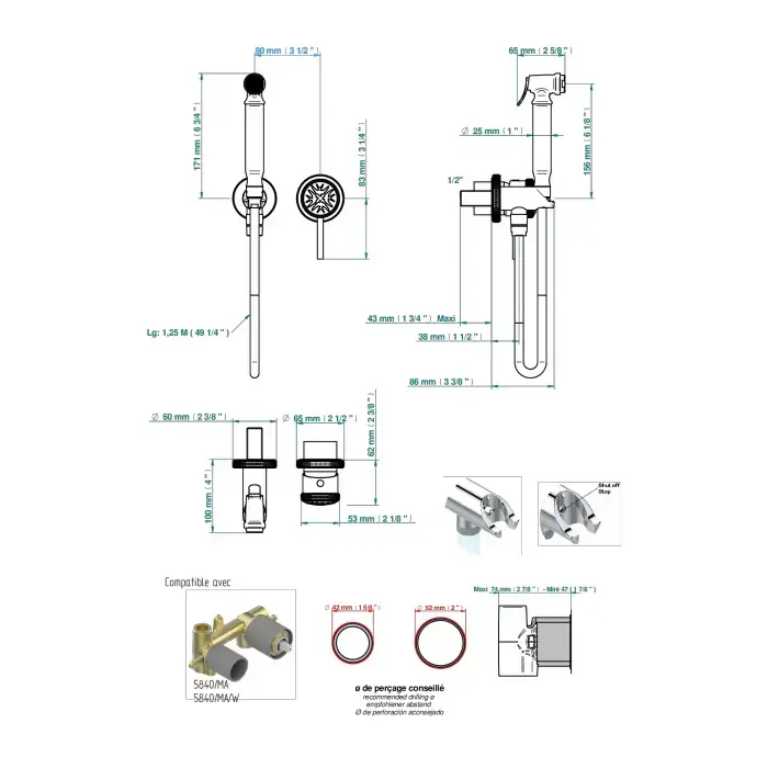 THG HIRONDELLES PLATINUM STAMPED Гигиенический душ в комплекте с встраиваемым однорычаж смесит, шланг 1250мм, держ с подв воды, внешн часть, цвет хром