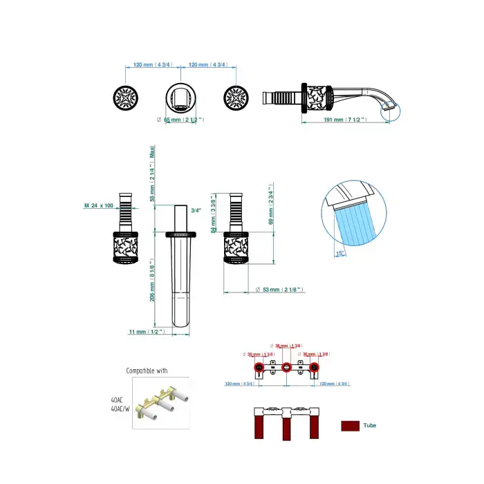 THG HIRONDELLES PLATINUM STAMPED Смеситель для раковины настенный на 3 отверстия, внешняя часть, цвет Brown bronze color PVD