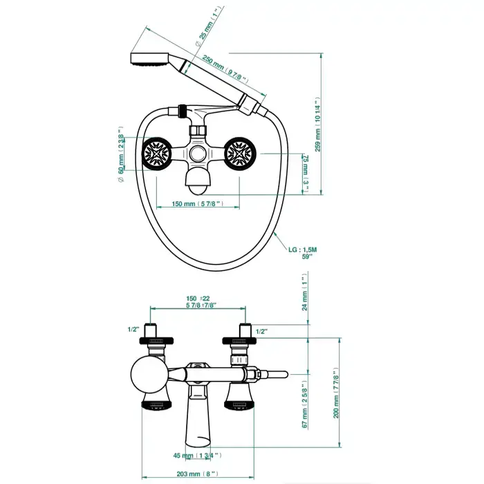 THG Hirondelles Platinum Stamped Гигиенический душ со встраиваемым смесителем, настенный, цвет: хром