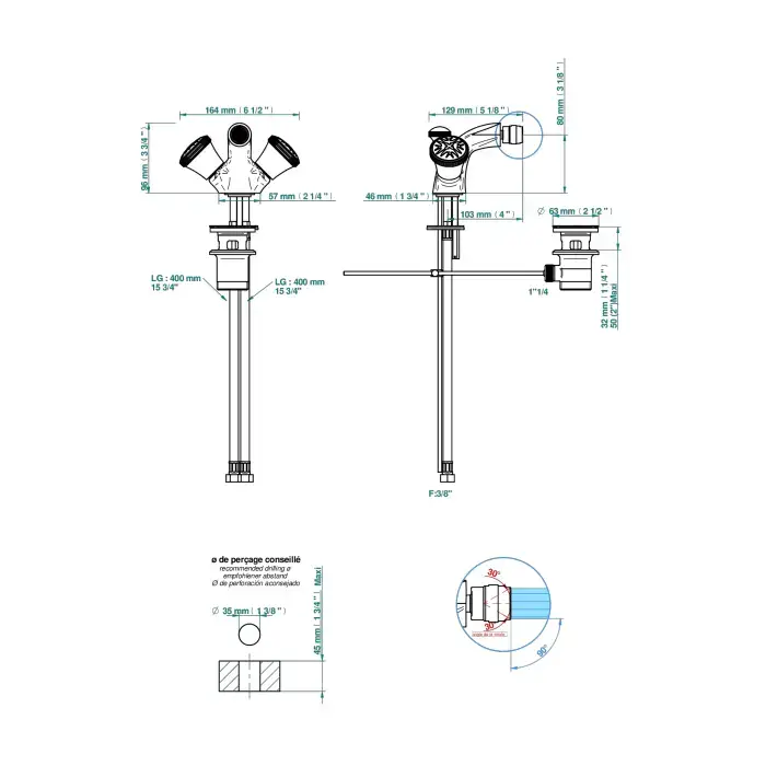 THG HIRONDELLES Смеситель для биде на 1 отверстие, двухвентильный, с донным клапаном, цвет хром