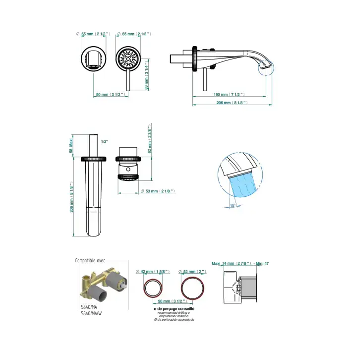 THG HIRONDELLES Смеситель для раковины настенный на 2 отверстия, внешняя часть, цвет Polished gold
