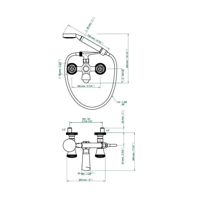 THG Hirondelles Смеситель для ванны, настенный, с ручным душем, цвет: Gold color PVD