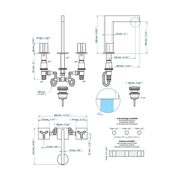 THG ICON-X CARBONE GOLD Смеситель для раковины, 3 отв., с донным клапаном, цвет: хром