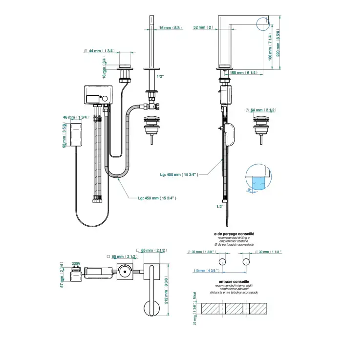 THG ICON-X METAL Смеситель для раковины, 2 отв., электронный, с донным клапаном, цвет: полированное золото