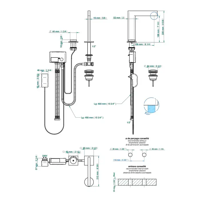 THG ICON-X TITANE Смеситель для раковины, 2 отв., электронный, с донным клапаном, цвет: полированное золото