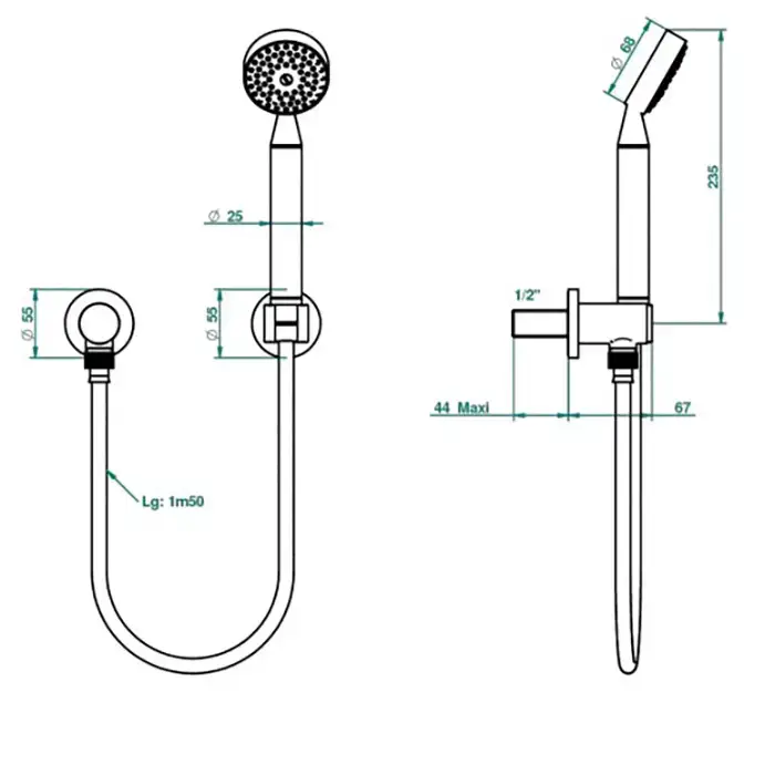 THG ISLAND Душевой комплект с ручным душем, держатель, подвод воды и шланг 1500 мм., цвет Soft gold
