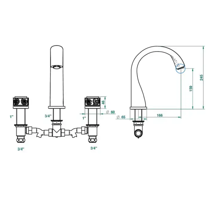 THG ISLAND Смеситель для ванны на 3 отверстия, без ручного душа, цвет Soft gold