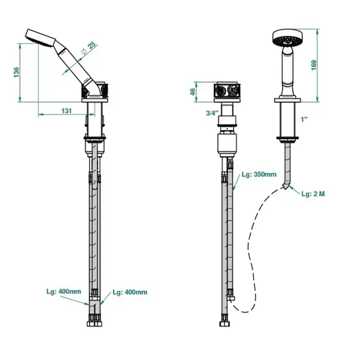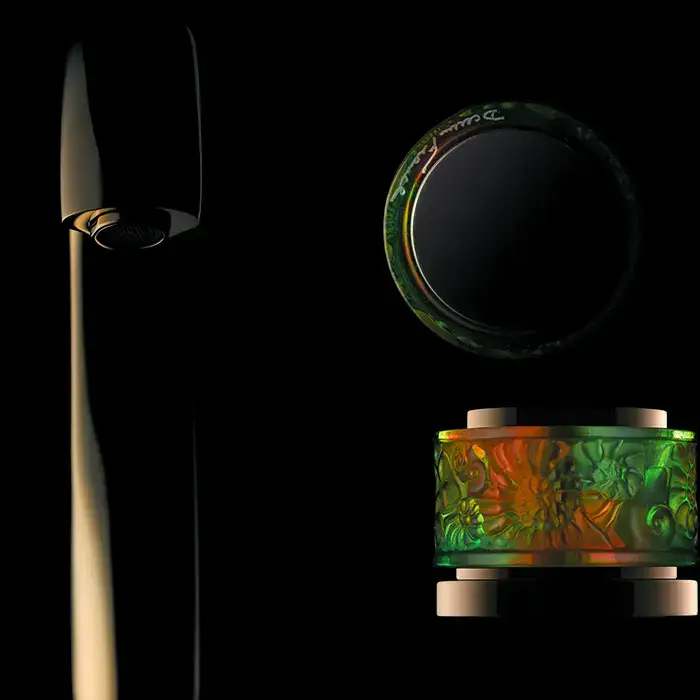 THG ISLAND Смеситель на борт ванны на 2 отверстия, прогрессивный, с ручным душем, цвет Soft gold