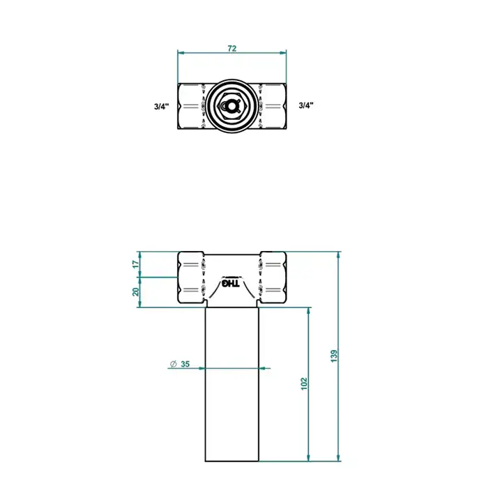 THG General items Встраиваемая часть вентиля 3/4" на гор. воду, закр. вправо
