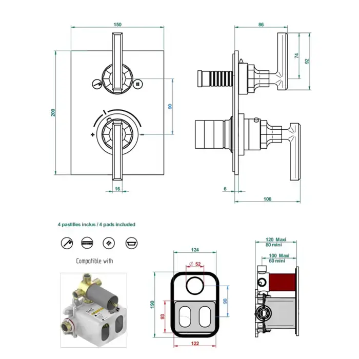 THG Les Ondes à manettes Смеситель для душа, термостатический, с переключателем на 3 потока, цвет Matt nickel