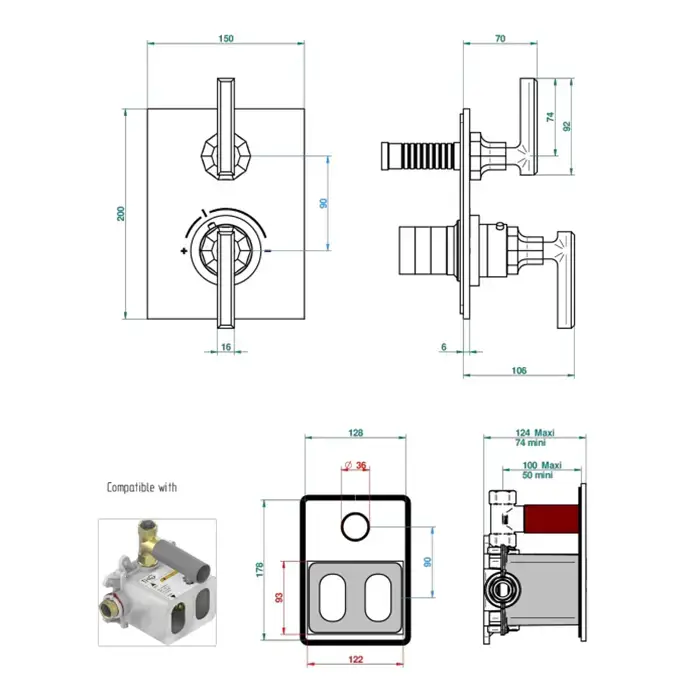THG Les Ondes à manettes Смеситель для душа, термостатический, с переключателем потока, цвет Matt nickel