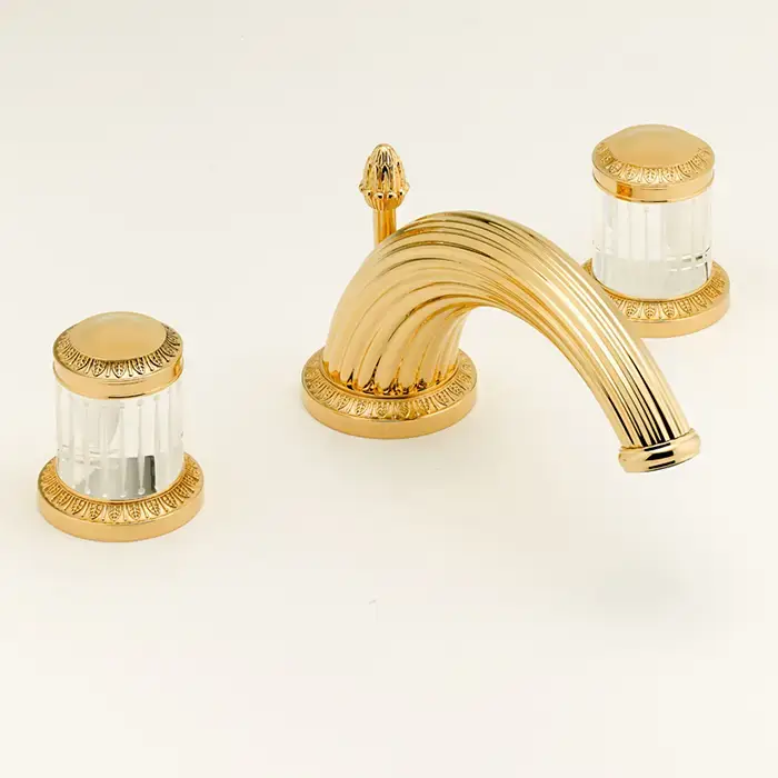 THG MALMAISON CRISTAL Смеситель для раковины на 3 отверстия, с донным клапаном, цвет полированное золото