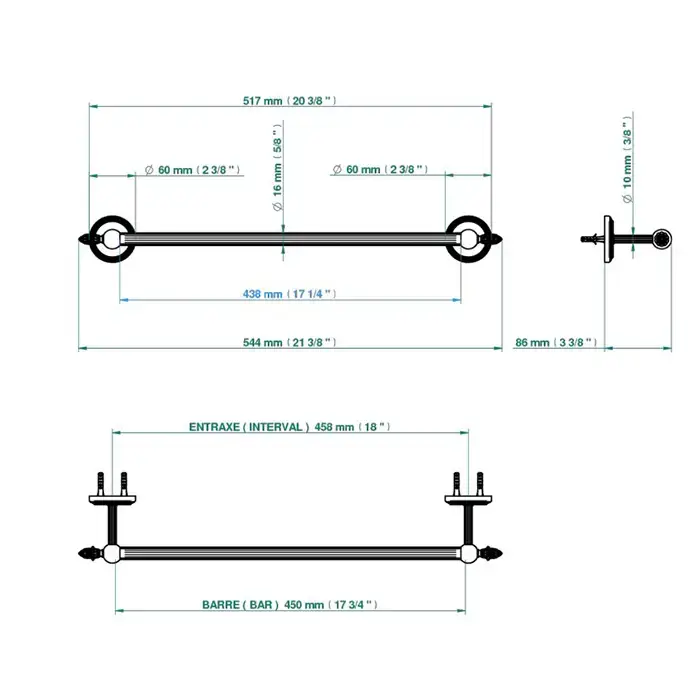 THG Malmaison metal Полотенцедержатель 45см., подвесной, цвет: полированное золото