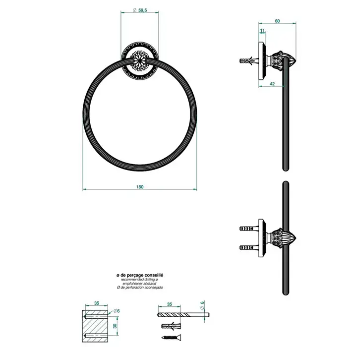 THG Malmaison metal Полотенцедержатель-кольцо 18см., подвесной, цвет: полированное золото