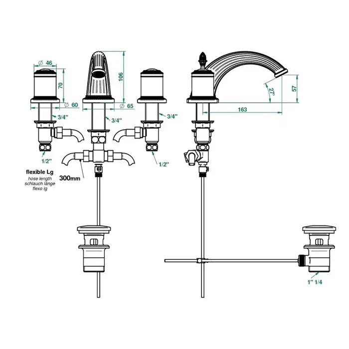 THG MALMAISON PORTORO Смеситель для раковины на 3 отверстия, с донным клапаном, цвет полированное золото