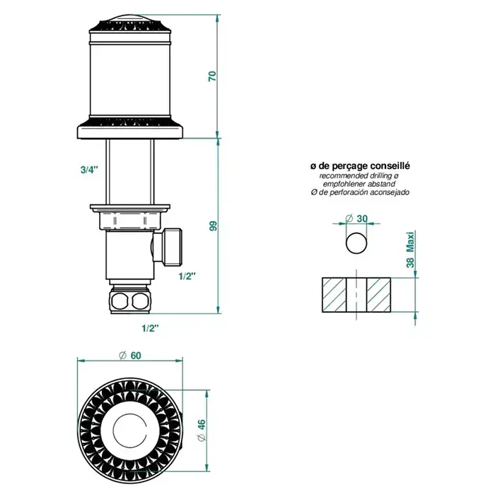 THG Malmaison Portoro Смеситель для душа встраиваемый, термостатический, с 2 запорными вентилями, внешняя часть, цвет: состаренный никель