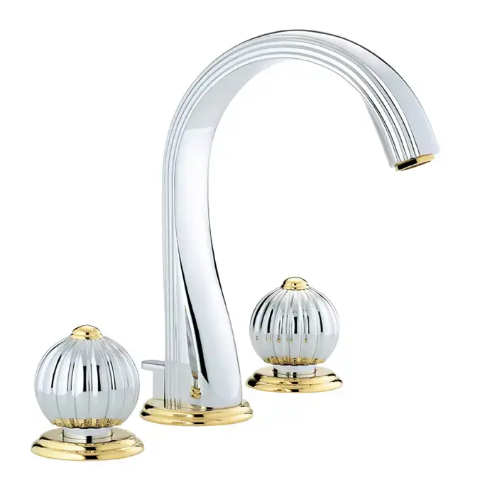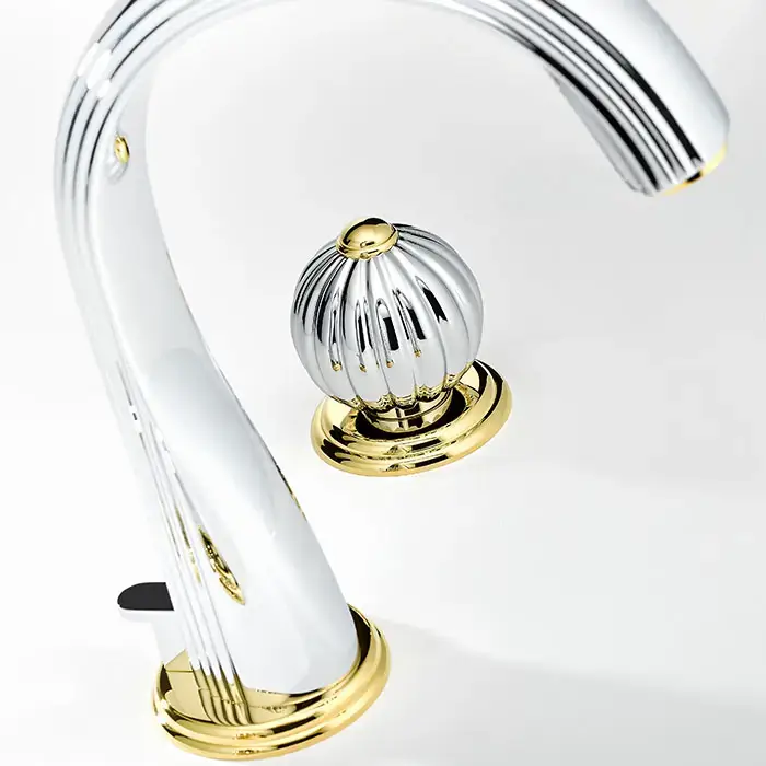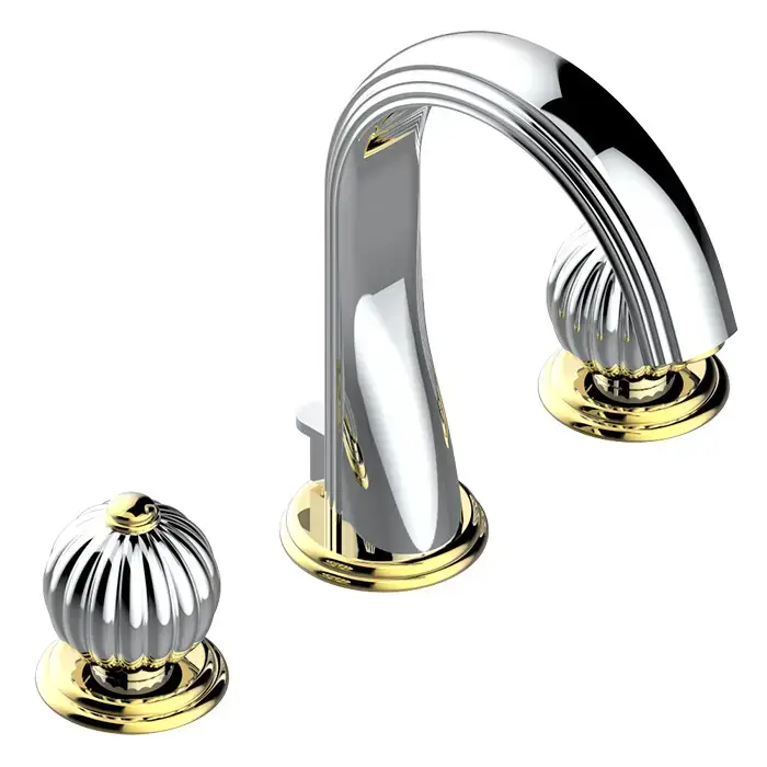 THG MANDARINE METAL Смеситель для раковины на 3 отверстия, с донным клапаном, цвет хром/золото