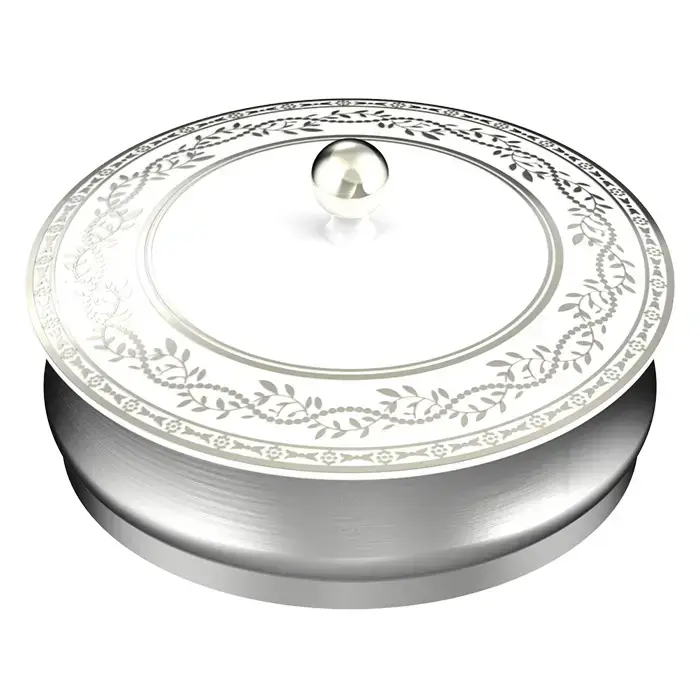 THG MARQUISE BLANC DECOR PLATINE Китайская лакированная коробка с белой керамической крышкой Ø180 мм., big size, декор платина, цвет серебро
