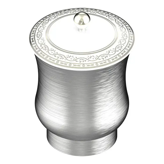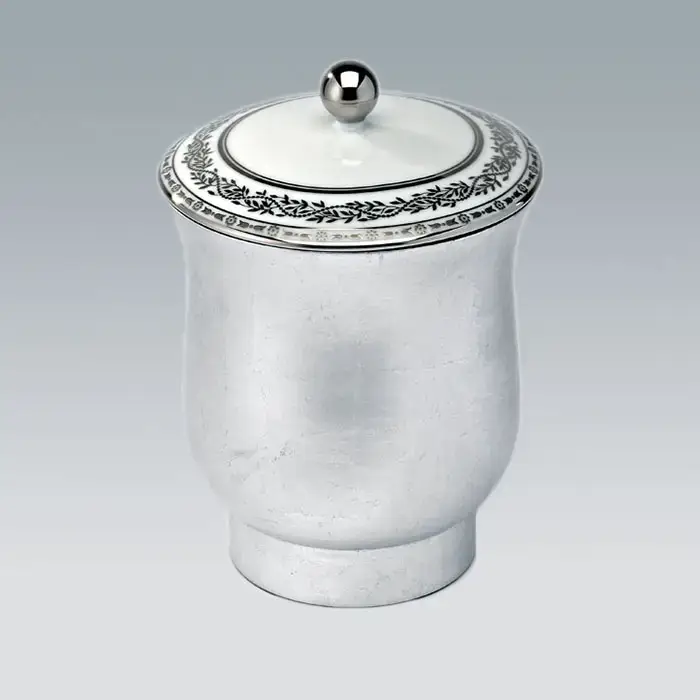 THG MARQUISE BLANC DECOR PLATINE Китайская лакированная коробка с белой керамической крышкой Ø126 мм., middle size, декор платина, цвет серебро