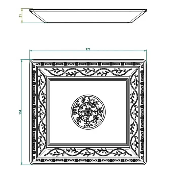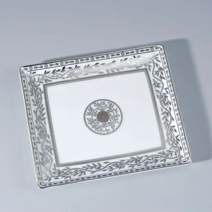 THG MARQUISE BLANC DECOR PLATINE Поднос керамический 171х154 мм., настольный, middle size, декор платина, цвет белый
