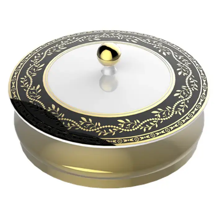 THG MARQUISE NOIR DECOR OR Китайская лакированная коробка с белой керамической крышкой Ø180 мм., big size, декор черный/золото, цвет: золото