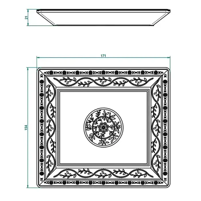 THG MARQUISE NOIR DECOR OR Поднос керамический 171х154 мм., настольный, middle size, декор черный/золото, цвет белый