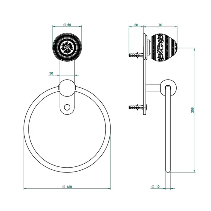 THG MARQUISE BLANC DECOR PLATINE Полотенцедержатель-кольцо, декор белый/платина, цвет хром