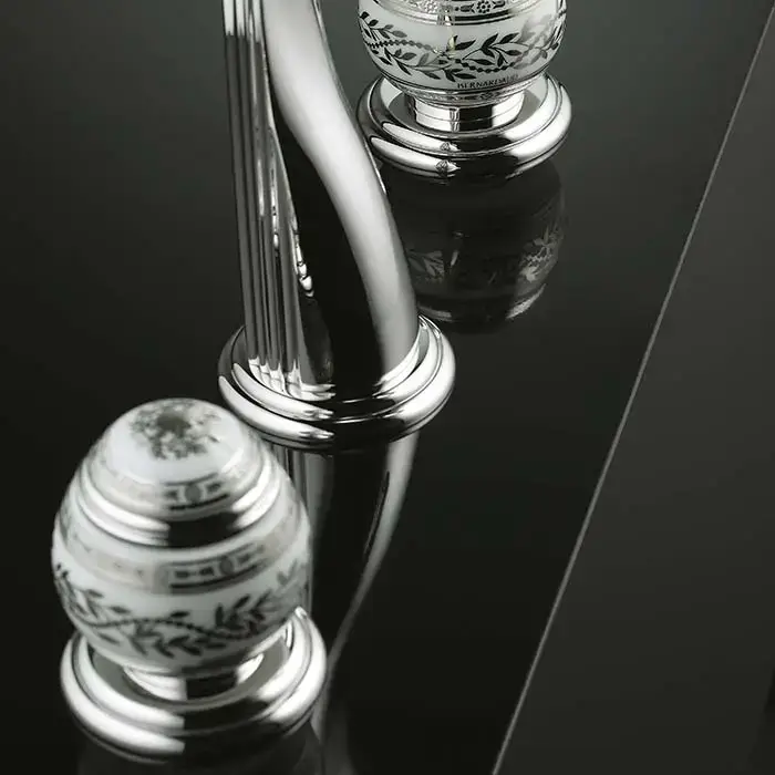 THG Marquise blanc decor platine Вентиль смесителя для раковины, ручка белая, декор платина, цвет: хром