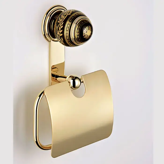 THG MARQUISE NOIR DECOR OR Держатель туалетной бумаги с крышкой, декор черный/золото, цвет полированное золото