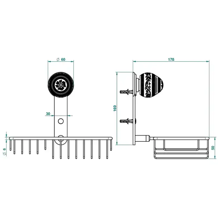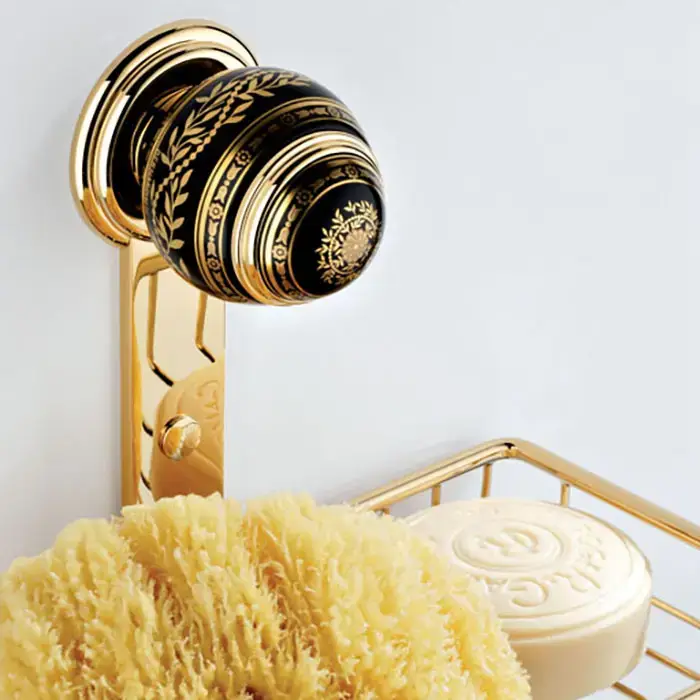 THG MARQUISE NOIR DECOR OR Мыльница-корзина металлическая 240х130 мм., подвесная, декор черный/золото, цвет полированное золото
