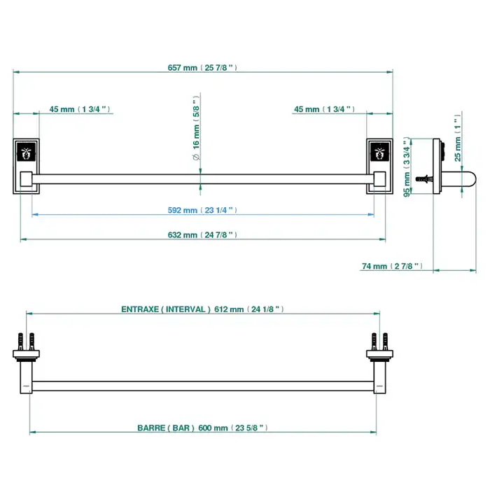 THG MASQUE DE FEMME METAL LISSE Полотенцедержатель 600 мм., цвет хром