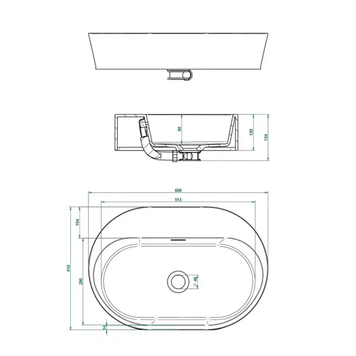 THG MONCEAU Раковина 600х410х120 мм., без отверстий для смесителя, с переливом, цвет белый матовый