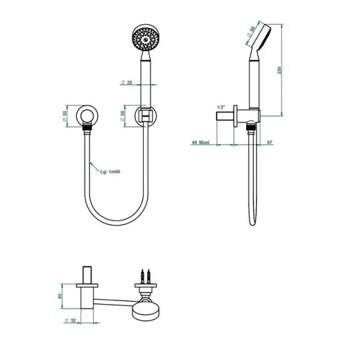 THG MOSSI CRISTAL CLAIR Душевой комплект с ручным душем, шланг 1500 мм., держатель и подвод воды, цвет хром