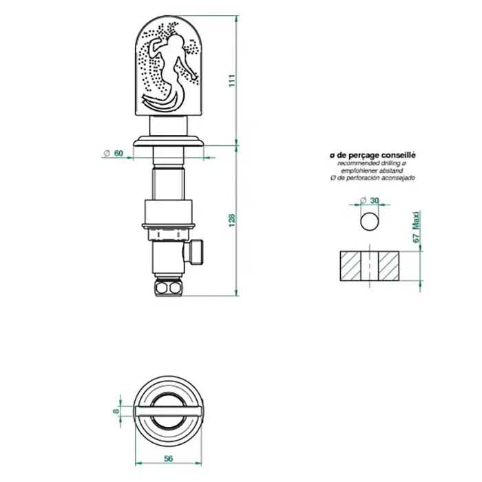 THG Naiade Гигиенический душ в комплекте с встраиваемым однорычажным смесителем, шланг 125cм., держатель с подводом воды, внешняя часть, цвет: хром