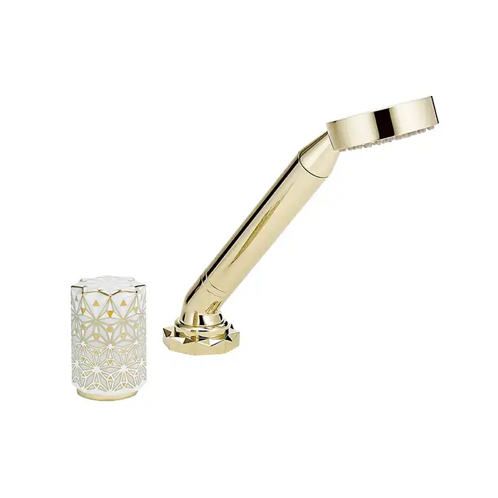 THG NIHAL PORCELAINE IVOIRE Смеситель на борт ванны на 2 отверстия, прогрессивный, с ручным душем, цвет Soft gold