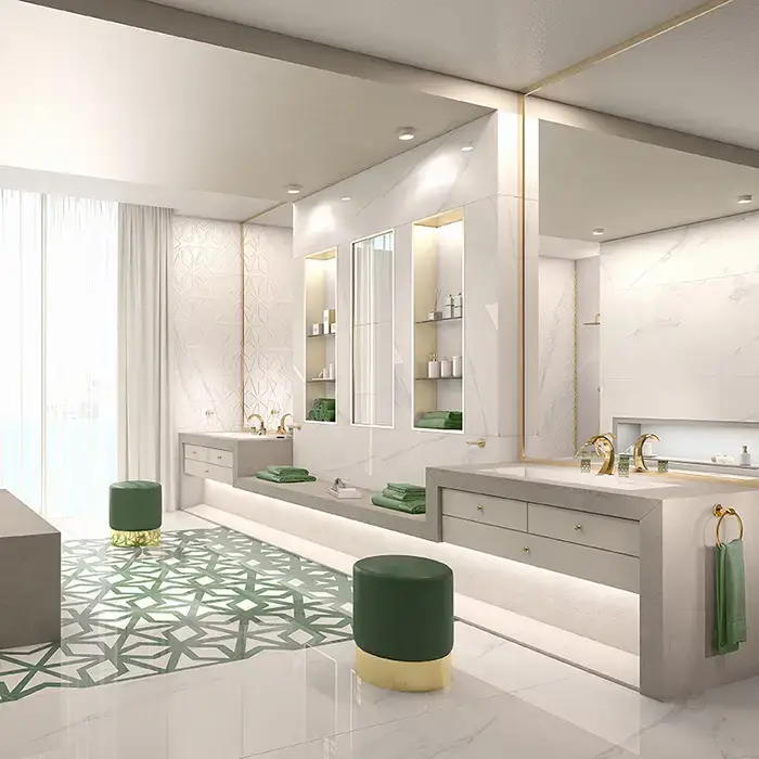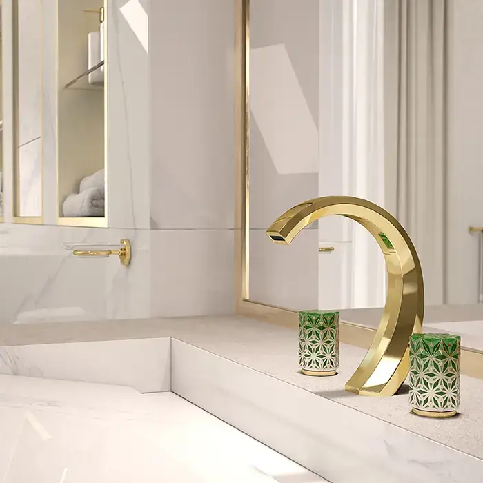 THG NIHAL PORCELAINE VERTE Смеситель для раковины на 3 отверстия, с донным клапаном, цвет Soft gold