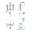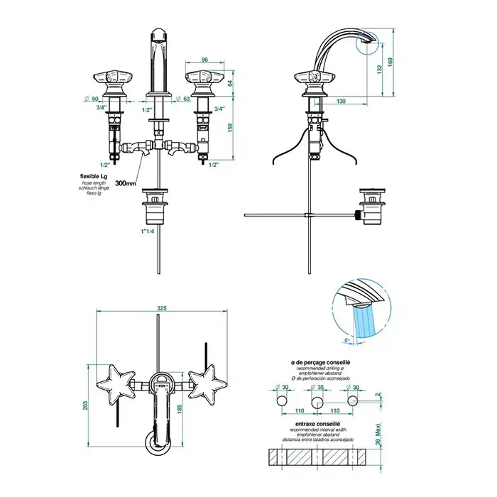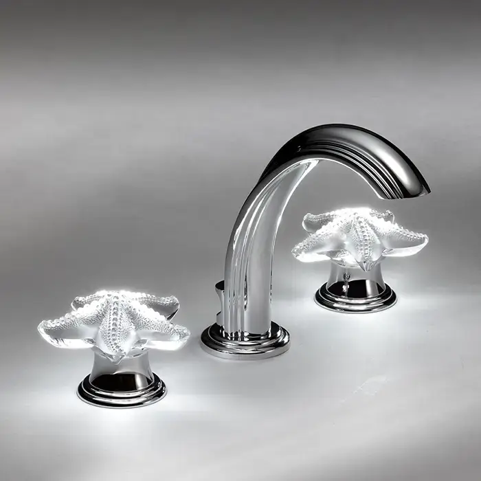THG OCEANIA Смеситель для раковины на 3 отверстия, ручки с подсветкой, с донным клапаном, цвет хром