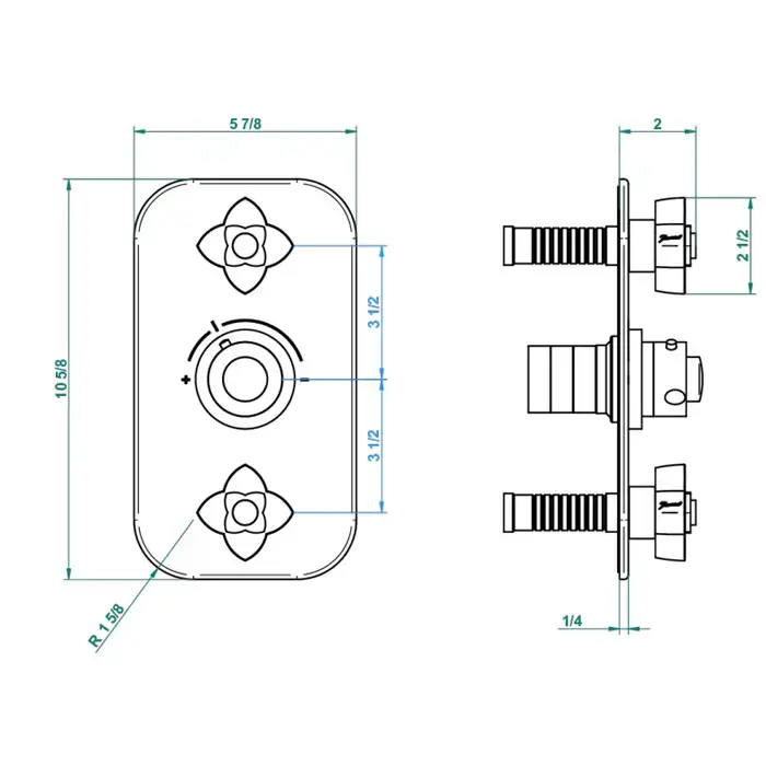 THG PETALE DE CRISTAL BLEU Смеситель для душа встраиваемый, термостатический, с 2 запорными вентилями, внешняя часть, цвет хром