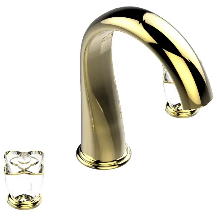 THG Petale de Cristal clair lisere dore Смеситель для раковины, 3 отв., цвет: золото/прозрачный хрусталь с золотым декором