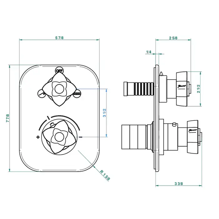 THG PETALE DE CRISTAL CLAIR Смеситель для душа встраиваемый, термостатический, с переключателем на 2 положения, внешняя часть, цвет хром